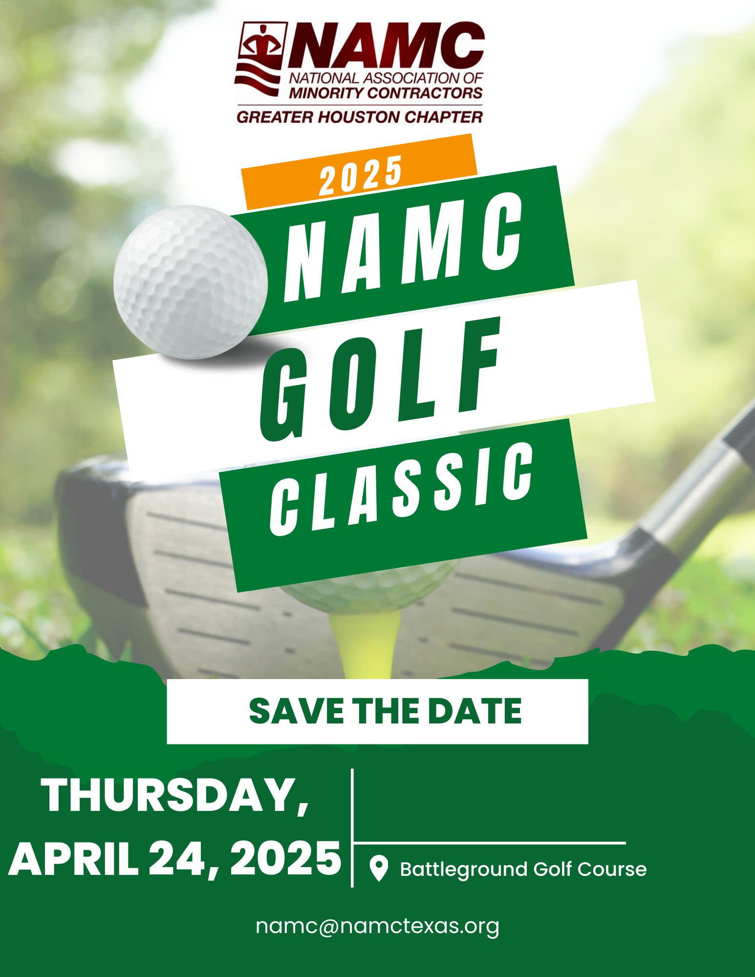 NAMC Houston 2025 Golf Tournament Sponsorship Levels & Benefits $5,000.00 CORPORATE SPONSOR Honorable mention including company logo on NAMC Golf Tournament website Two (2) foursomes (8 players), includes lunch and VIP dinner table Vendor Sponsorship: Table set up on the course during tournament Sponsorship of at least one (1) Hole/Tee Signs on hole(s) Information or premiums in all golfers goodie bags. $4,000 GOLF CART SPONSOR Honorable mention including company logo on NAMC Golf Tournament website One (1) foursome (4 players), includes lunch and VIP dinner table Golf Cart Recognition and Table set up on the course during tournament Sponsorship of at least one (1) Hole/Tee Signs on hole(s) Information or premiums in all golfers goodie bags. $3,000 PRIME CONTRACTOR SPONSOR Honorable mention including company logo on NAMC Golf Tournament website One (1) foursome (4 players), includes lunch and dinner Vendor Sponsorship: Table set up on the course during tournament Sponsorship of at least one (1) Hole Sign Company information or premiums in all golfers goodie bags. $2,500 SUBCONTRACTOR SPONSOR One (1) foursome (4 players), includes lunch and dinner Sponsorship of at least one (1) Hole Sign Company information or premiums in all goodie bags. $1,000 SUPERINTENDENT SPONSOR (Limited Space Available) One (1) foursome (4 players), includes lunch and dinner. $1,500 GRAND VENDOR SPONSOR Contest booth set up on the course during tournament whole sign placement. $2,500 MEAL SPONSOR SINGLE PLAYER SPONSOR One (1) foursome (4 players), Special logo recognition on Golf Tournament website Sponsorship of at least 1 Hole Sign. Opportunity to provide branded item for swag bag. $1,000 CONTEST SPONSORS Company Logo at Contest Tee Box, includes lunch and dinner Company Logo listed on NAMC Website. $250 SINGLE PLAYER SPONSOR One (1) Individual Player Lunch and Dinner included. $250 HOLE SIGN SPONSOR One (1) 18”x24" hole sign placement