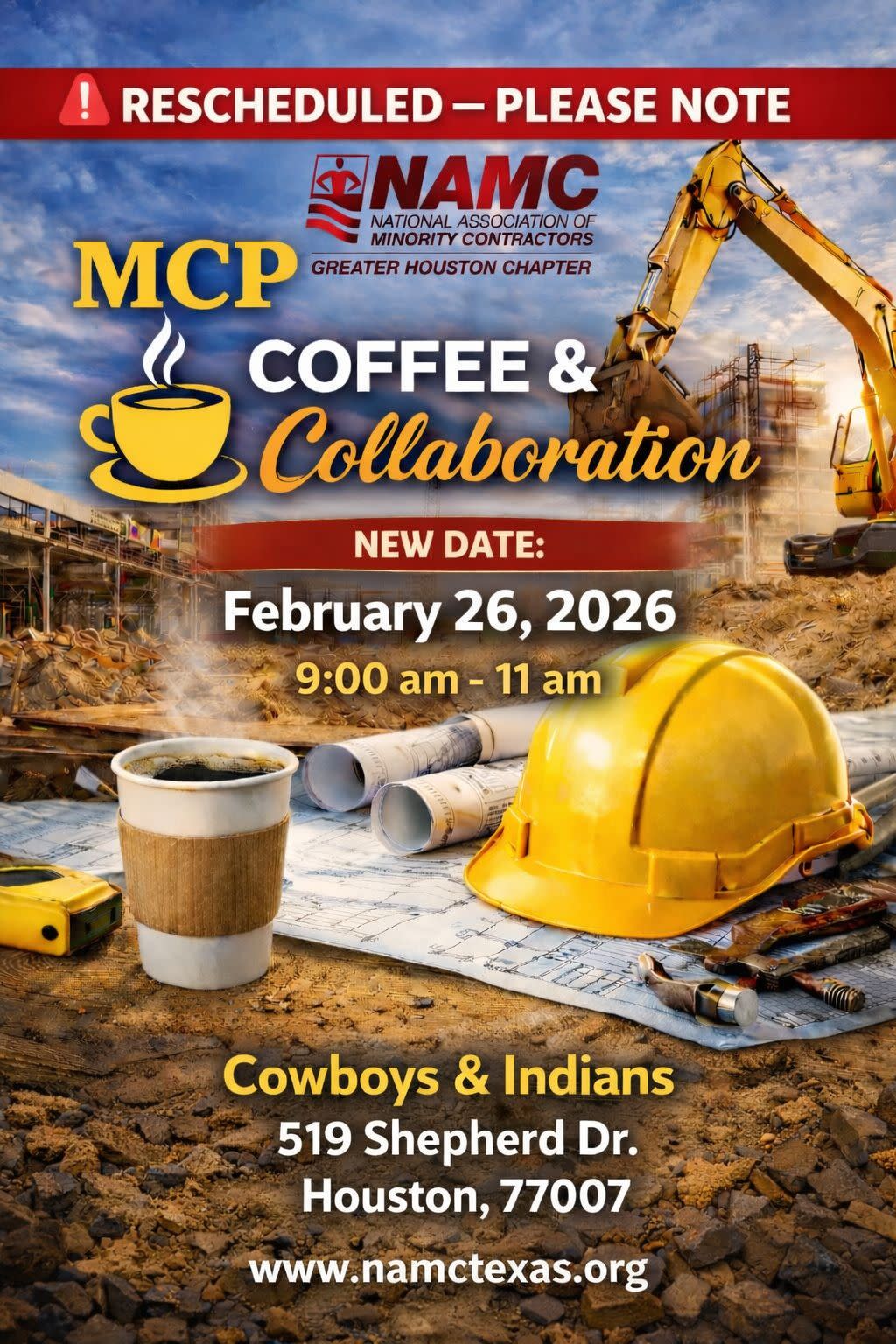 Join us for an exclusive morning of connection, collaboration, and construction industry insight! We’re bringing together Houston’s top corporate partners and industry leaders for a power-packed session designed to build relationships, share upcoming projects, and spark partnerships that move our industry forward. Let’s connect. Let’s collaborate. Let’s build what’s next—together. #NAMCHouston #BuildingTogether #ConstructionLeadership #PartnershipsThatBuild