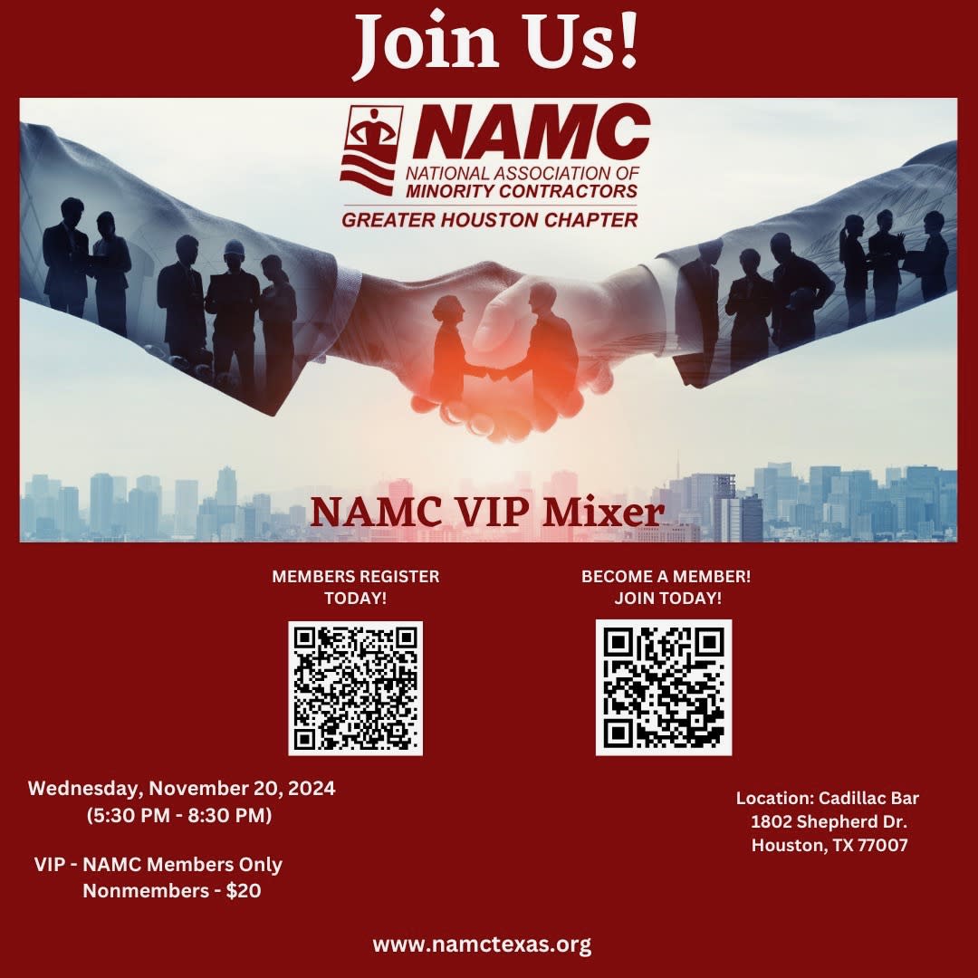 Join us for an evening of networking, ideas exchange, and building valuable relationships within the construction industry. This event provides an excellent opportunity to connect with like-minded individuals, share insights, and explore potential collaborations. We look forward to welcoming you to an evening of productive networking and the chance to forge lasting connections. Should you have any questions or require further information, feel free to contact us at 832-589-9606 Members: Free Non Members:$20